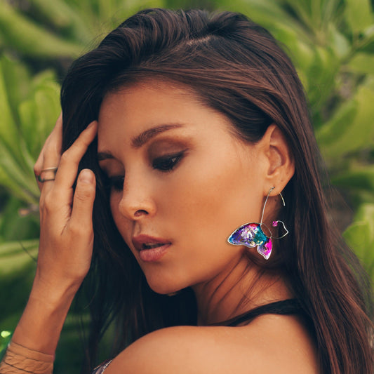 Butterfly Earrings Hand Painted Hawaiian Rainbow