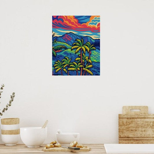Tropical Palm Trees with Ko'olau Mountain Pop Art Landscape Poster ~ Multiple Sizes Available