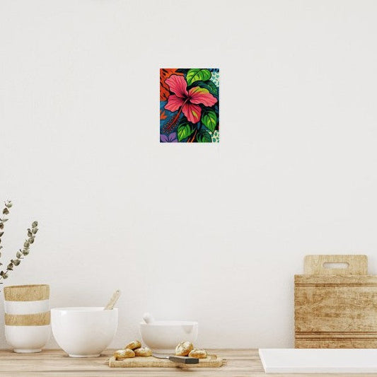 Tropical Pink Hibiscus Flower Pop Art Poster ~ Multiple Sizes Available