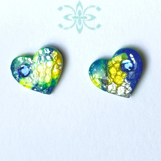 Blue and Yellow Multi-Color Heart Metallic Earrings with Swarovski Crystals