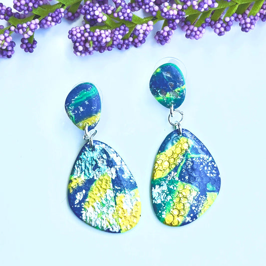 Blue and Yellow Multi-Color Metallic Earrings in Silver