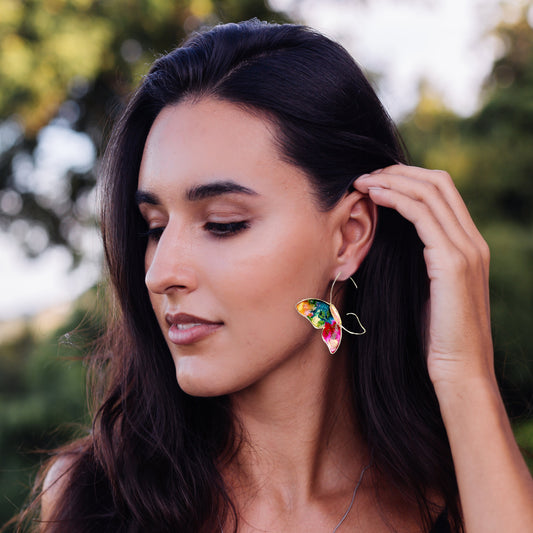 Hope Butterfly Wire Frame "Stained Glass" Earrings in Gold