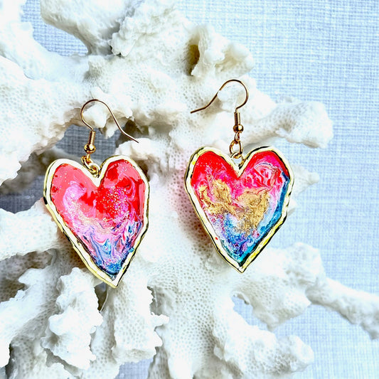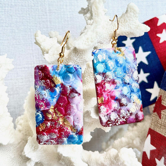 Hearts on Fire Red White & Blue Resin Heart Earrings